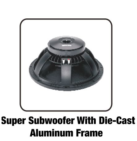 Altavoz LF: 18” con marco de aluminio fundido a presión y bobina de 4”.