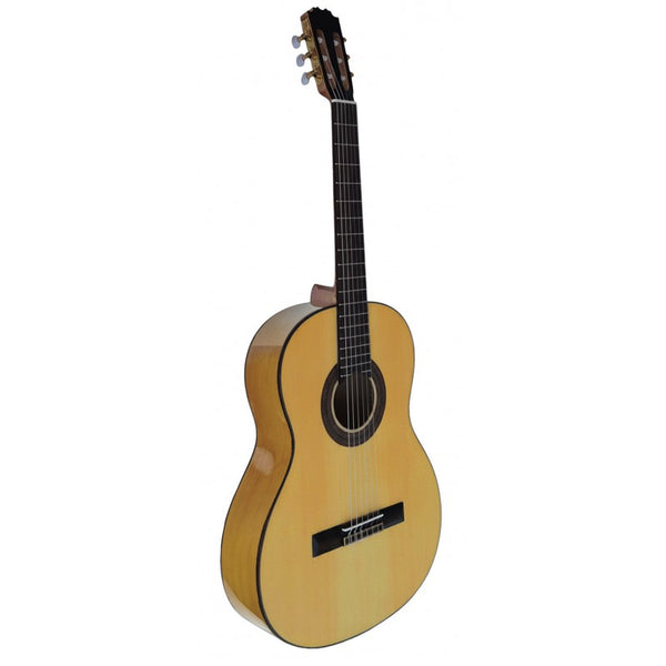 La Vicente Tatay C320.580 está pensada para guitarristas que buscan un instrumento flamenco cómodo, ajustable y con carácter tradicional. Su tapa de abeto proporciona proyección clara y brillo, mientras que el cuerpo de sicomoro aporta ligereza y un timbre percusivo ideal para el flamenco. El mástil con alma regulable permite personalizar la acción de las cuerdas y mantener la estabilidad a lo largo del tiempo, mientras que el golpeador ya instalado protege la tapa en los rasgueos intensos.