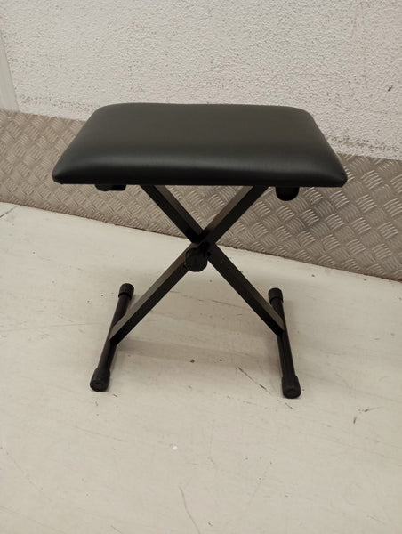 Esta banqueta ajustable está diseñada para ofrecer el máximo confort durante tus sesiones de práctica o directo. Su estructura metálica en forma de “X” proporciona una gran estabilidad, mientras que el asiento acolchado garantiza una postura cómoda incluso en largas jornadas de estudio.